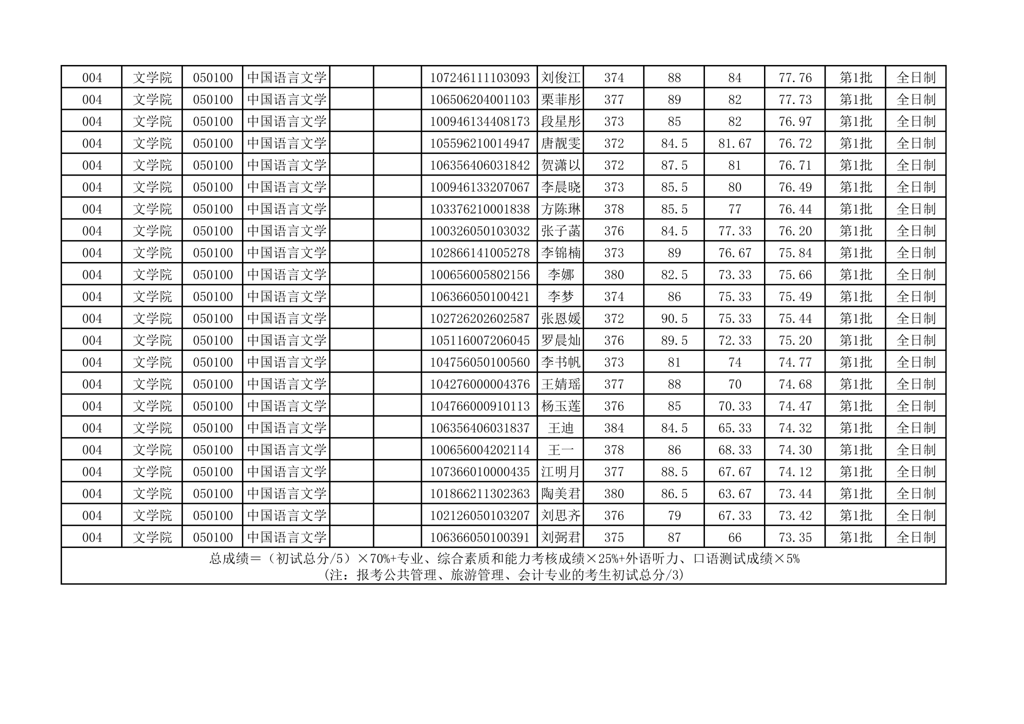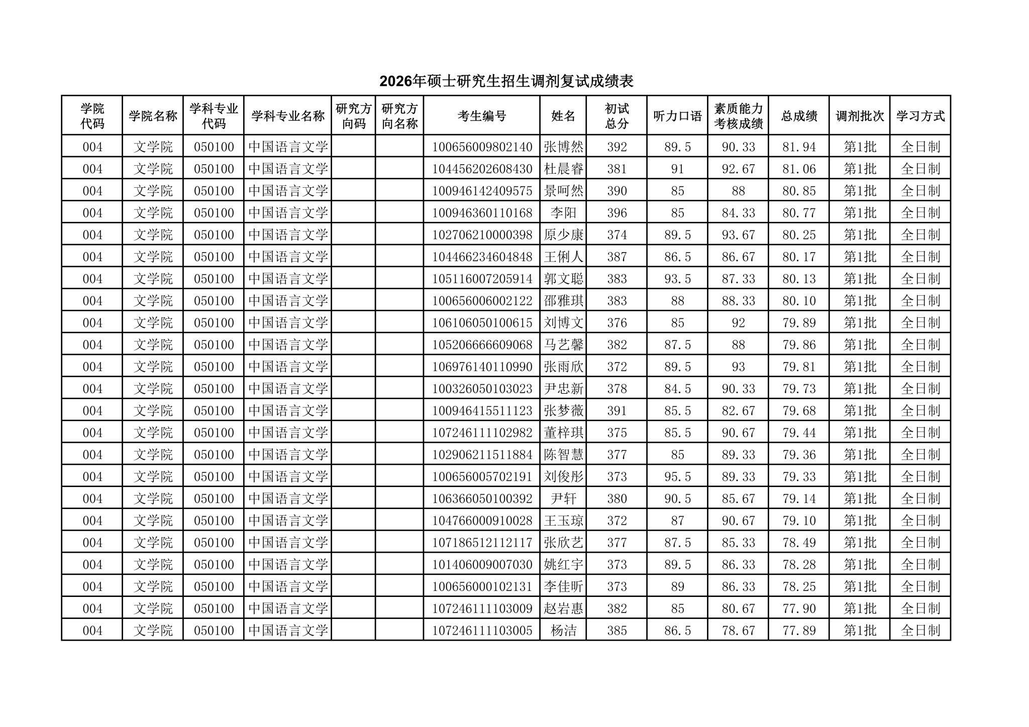 根据教育部有关文件规定,经学校研究生招生工作委员会审批,现将赚钱网站 中国语言文学2026年硕士研究生调剂考生复试成绩进行公示。
