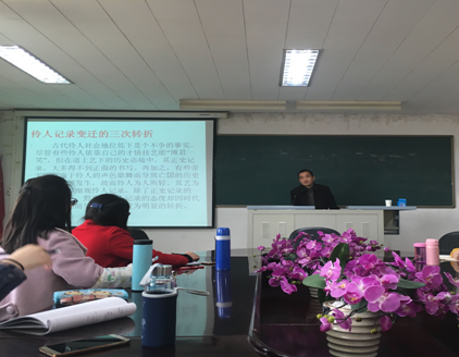 报告会上,高建旺老师从戏曲发展史的角度观照文学史料中士人对古代伶人记录态度的转变历程,看出伶人的社会地位随着不同时期戏剧的发展而逐渐提高的历史事实,从而关切到随着历史情境的变迁,士人对伶人逐渐抹去尊卑鸿沟的心理变迁。把伶人具有的客观文化属性揭示了出来,从而展现出伶人真实的历史面貌。
