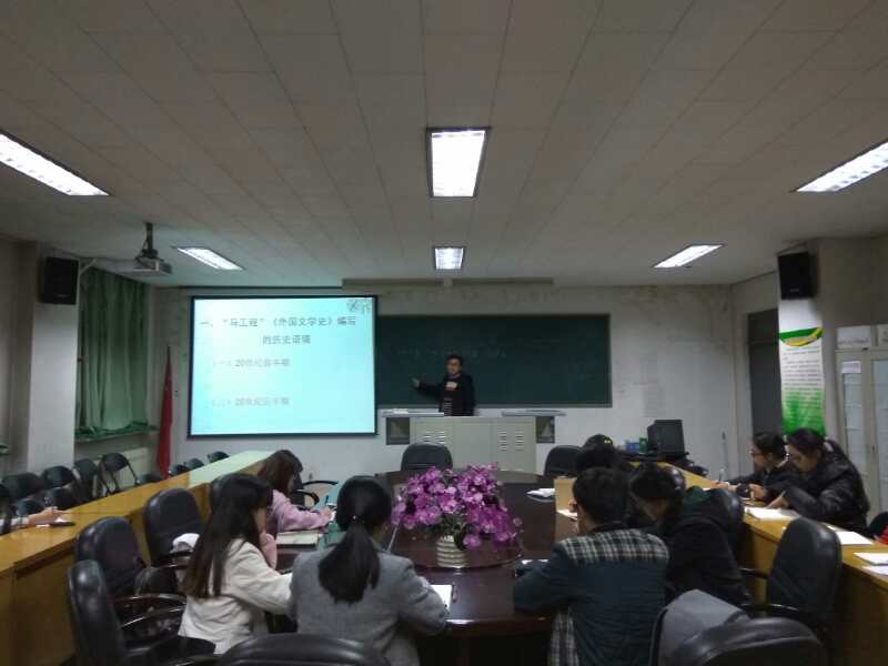 副教授、硕士生导师高超在12号楼5层会议室作了题为“‘马工程教材’《外国文学史》编写特点与配套教学改革”的学术报告,比较文学与世界文学专业的研究生到场听取了此次报告。