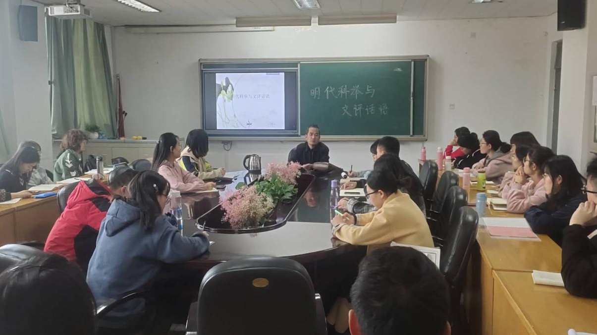 会议室作了“明代科举与文评话语”为主题的学术讲座,中国古代文学方向各年级的硕士研究生听取了讲座。