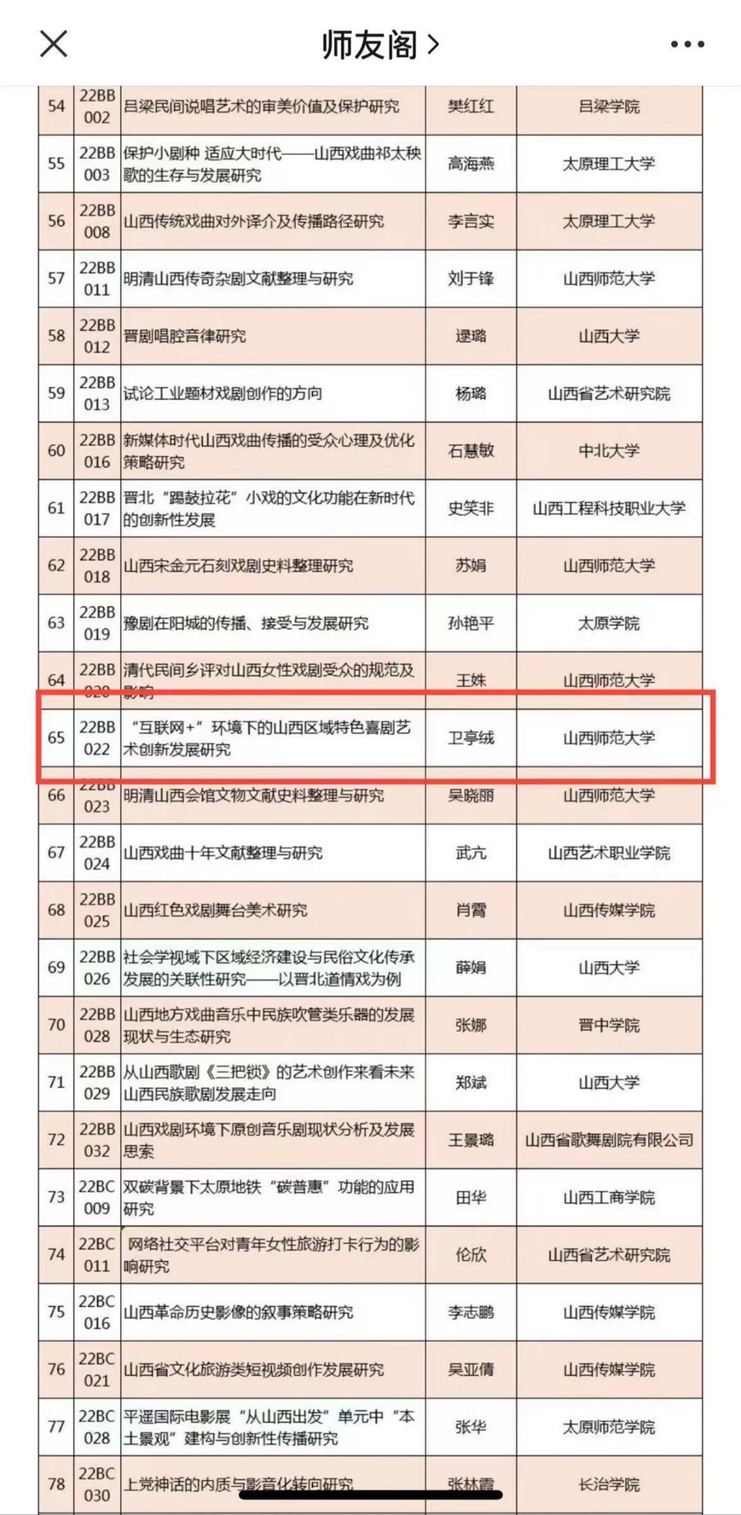 卫亭绒《“互联网+”环境下的山西区域特色喜剧艺术创新发展研究》成功立项。