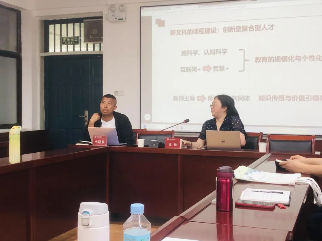 随后,徐老师从教育部“新文科课程建设”总体布局出发,以自身课程建设为基础,总结出课程建设助推创新性复合型人才的两条思路:其一,了解脑科学和认知科学的基本知识,广泛运用互联网技术,真正实现教育的规模化与个性化的统一;其二,将以教师主导的课堂转向师生学习共同体的课堂内外的多向互动,努力做到知识传播与价值引领并重。