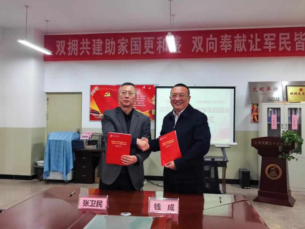 党委书记钱成与第五十三中学校校长张卫民,签订了《实践教学基地合作协议》。