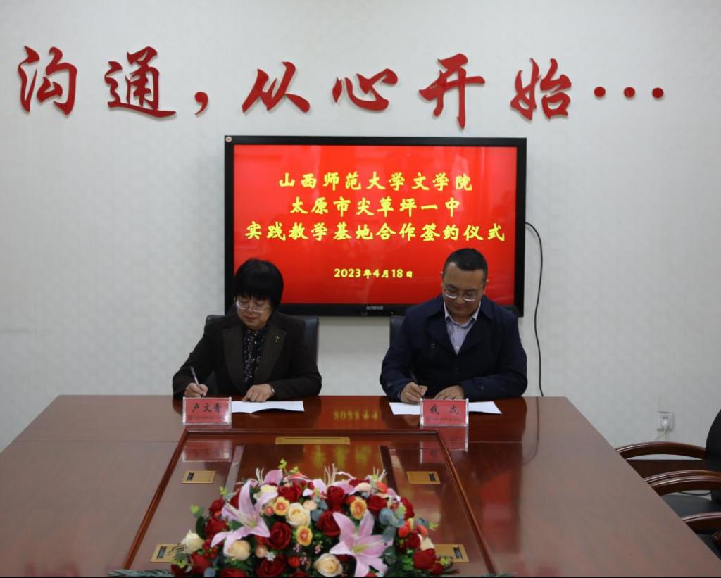 党委书记钱成与太原市尖草坪一中校长卢文青签订了《实践教学基地合作协议》。