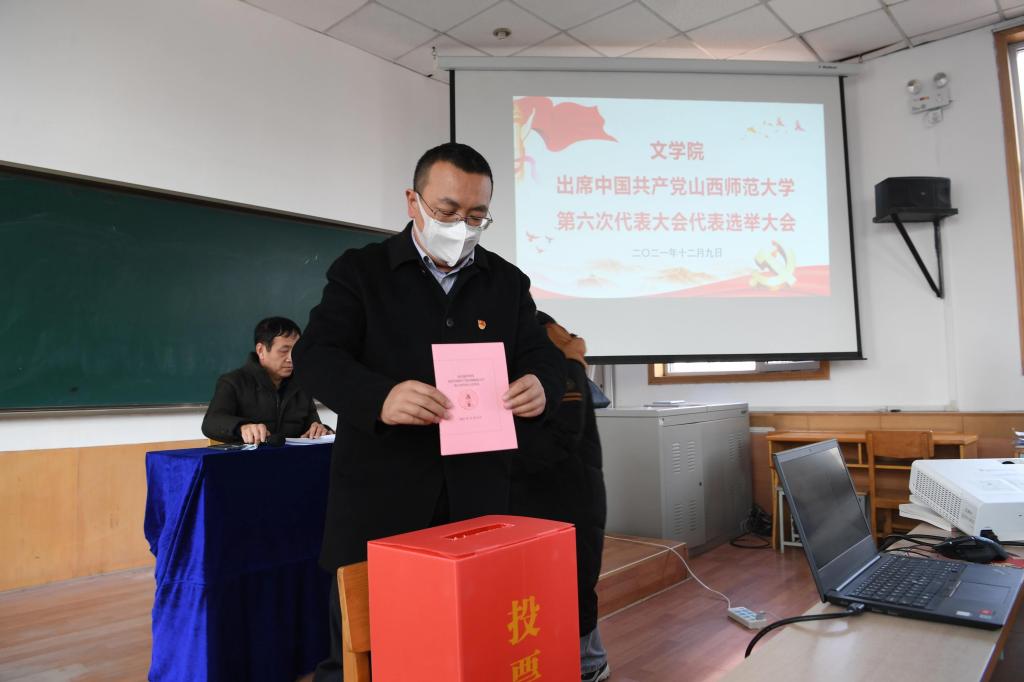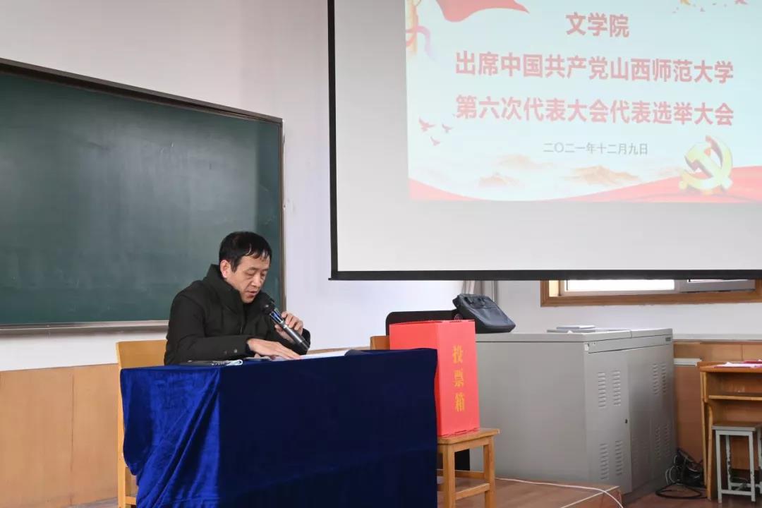 在2412会议室召开中国共产党山西师范大学第六次代表大会代表选举大会。大会由院党委书记强汾生同志主持,全体师生党员参加。