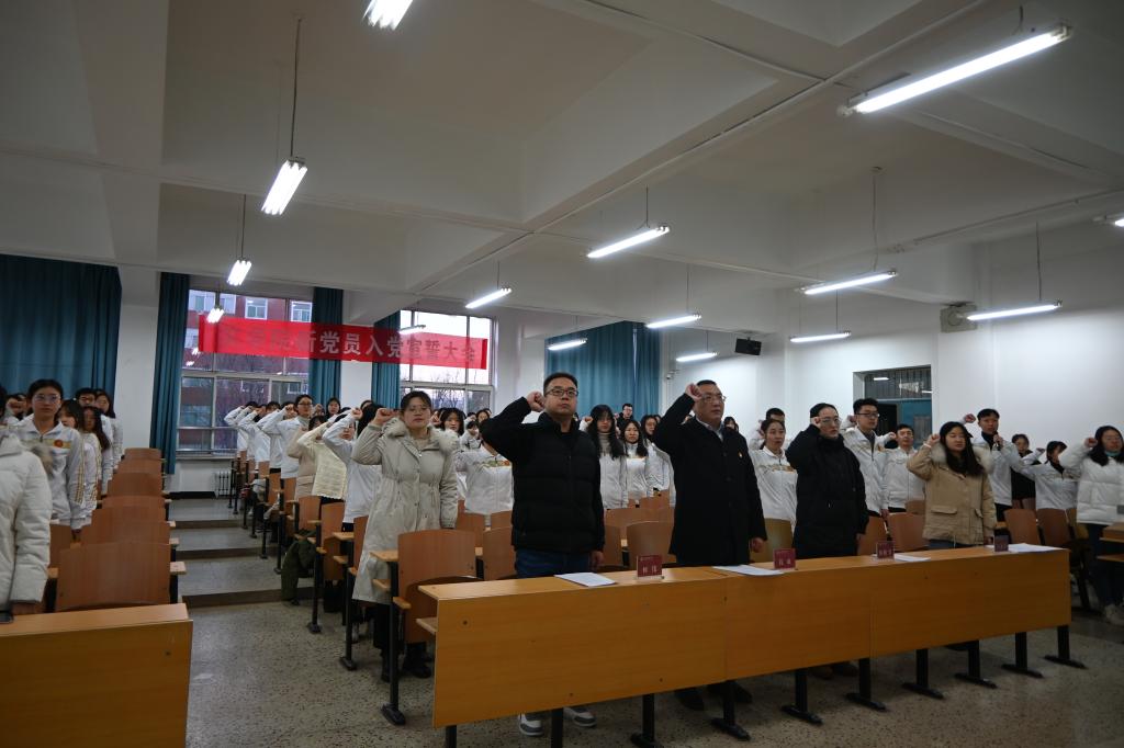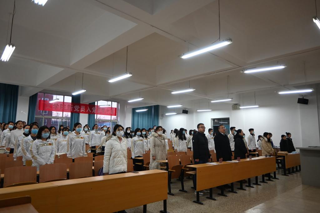 在3209教室举行新党员入党宣誓仪式。院党委副书记钱成、汉语言文学学生党支部书记侯昕昊、编辑出版学学生党支部书记何伟出席仪式,10位党员代表及75位新党员参加。院专职组织员王永青主持仪式。
