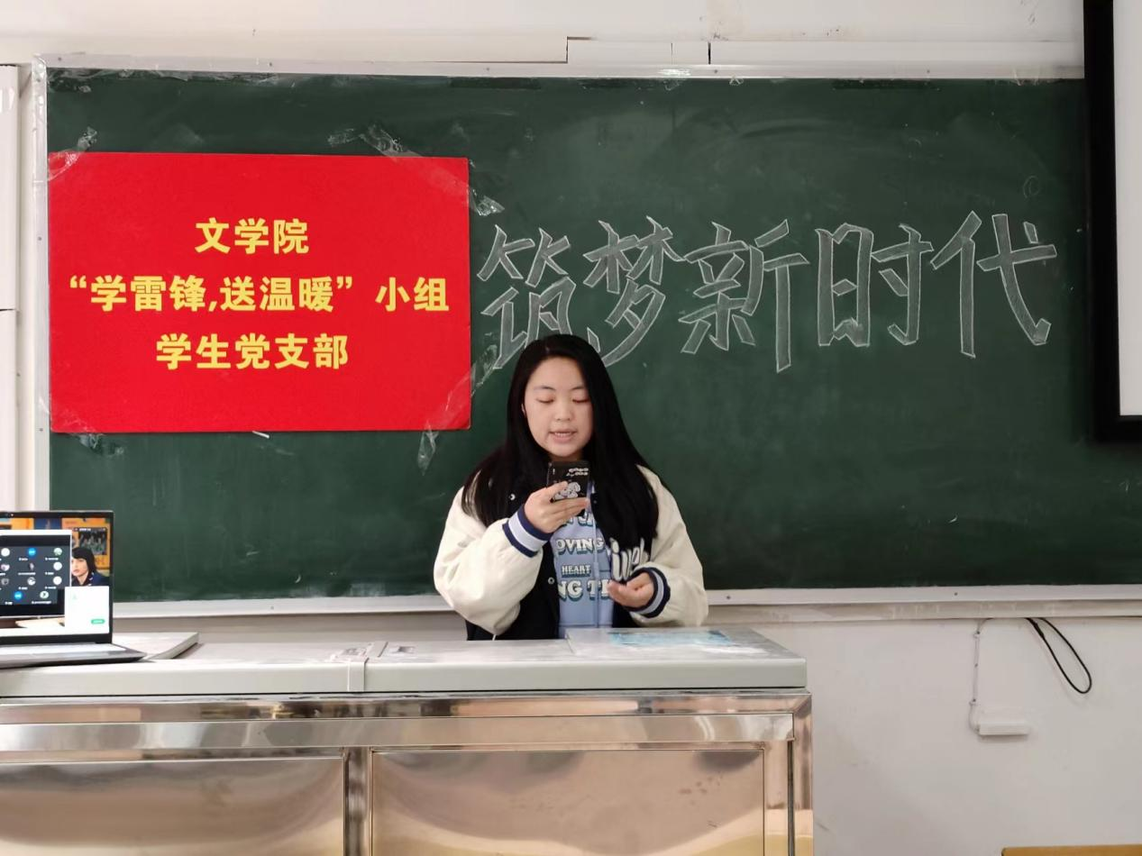 “学雷锋,送温暖”小组学生党支部在南区3101教室组织开展“敢担当,有作为,筑梦新时代”主题党日活动。会议由支部书记安李蓉主持,支部全体党员参加。学生党员王梓怡同志担任主讲人。