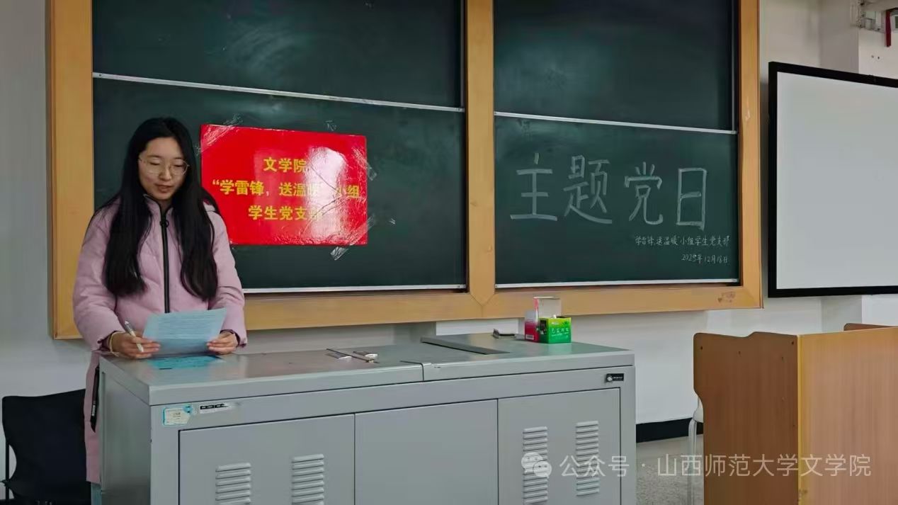 “学雷锋,送温暖”小组学生党支部在南区3107教室开展主题党日活动,专题学习贯彻党的二十届四中全会精神。活动由季春莹同志担任主讲,全体党员和积极分子参加。