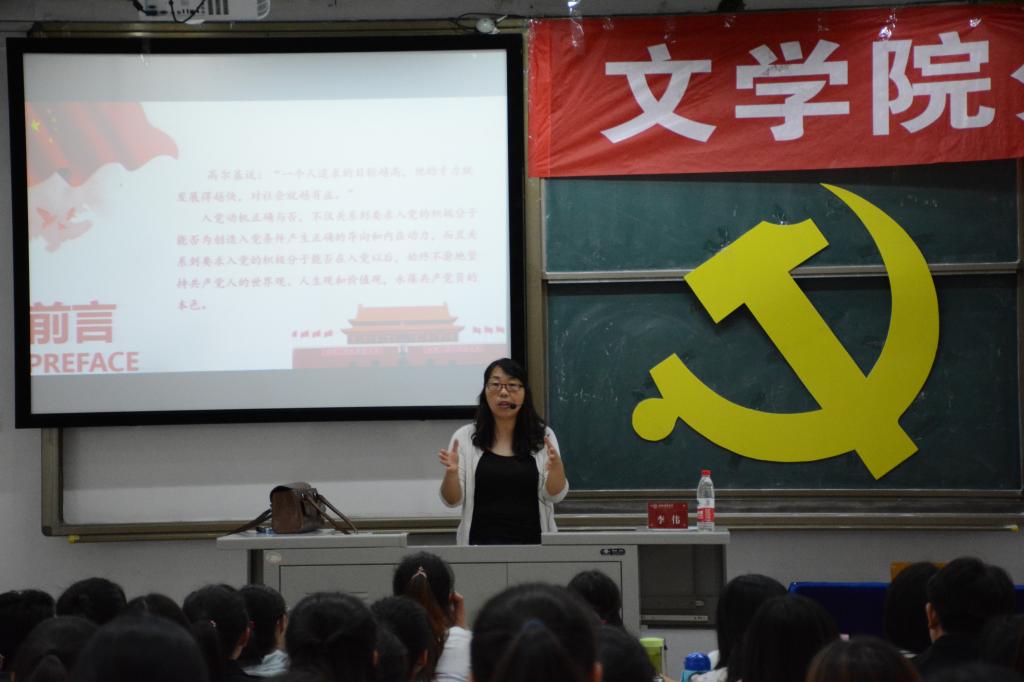 课上,语言学教工党支部书记李伟以“树立信念 明确目标 端正动机”为主题,阐述何为正确的入党动机及如何树立。语言文艺及民俗学研究生党支部书记钱成从党的十九大精神、习近平新时代中国特色社会主义思想等方面入手,回顾了十九大会议的重要内容和近年来我国各方面工作的重大进展,详细生动地阐述了十九大会议的召开对于全党、全国的重大意义。青年教师创新团队党支部书记栗永清进行中国特色社会主义专题讲解,他用诸多实例展现了经过几代人的付出后现如今所形成的比较完整的中国特色社会主义,告诫大家要坚持道路和原则,遵循党的方向继续努力前进,讲好中国故事。汉语言文学学生党支部书记侯昕昊向大家详析了党的组织、纪律和作风,进一步增强学员的党性观念和政治责任感。文学及写作研究生党支部书记白建忠从“全面”“严”“治”六字的内涵着手,告诉学员们全面从严治党、作风建设永远在路上。编辑出版学及汉语国际教育学生党支部书记何伟从党指导思想的内容、原因以及贯彻落实做法三个方面逐层深入讲解,将远大理想与共同信念深植心中。“学雷锋,送温暖”小组学生党支部书记樊琳琳向大家介绍了发展党员的条件及工作程序。