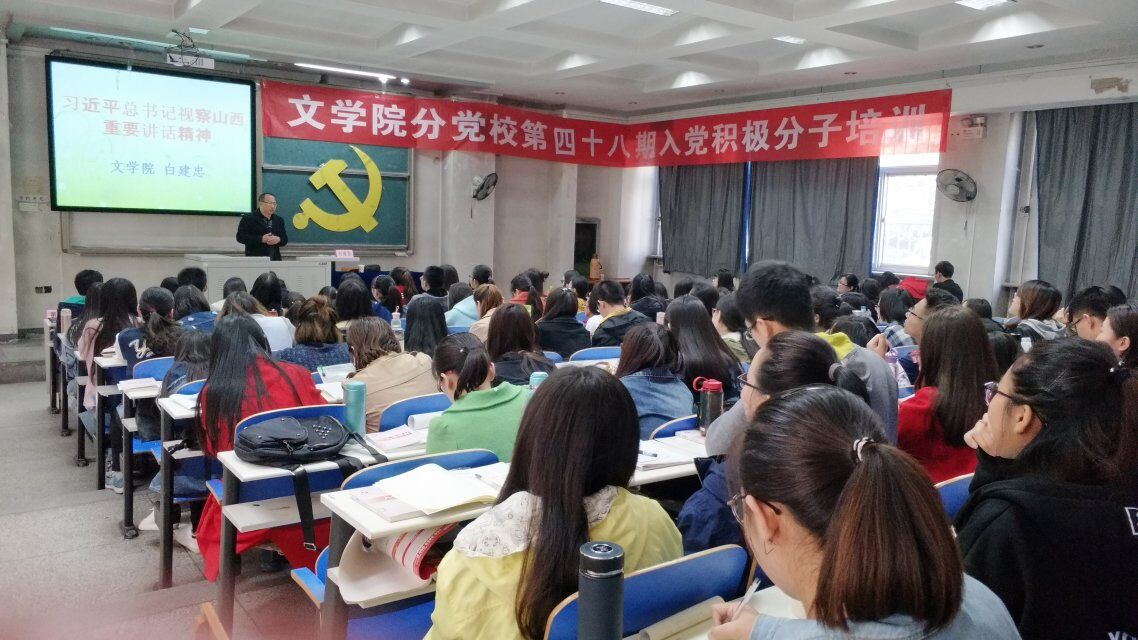 分党校结合中组部组织一局编印的《入党教材》,科学合理地安排了本次培训的系列专题。院党委副书记钱成作题为《党的十八大,十八届三中、四中、五中、六中、七中全会精神解读》的专题辅导,从党的十八大召开的时代背景、国际国内形势、十八大以来取得的重大成绩等多个方面,带领培训学员共同学习领会了相关会议的精神。汉语言文学学生党支部书记李蓉作《社会主义核心价值观解读》报告,通过现场讲解以及观看视频的方式,将社会主义核心价值观的精神内涵分国家、社会、公民个人三个层面传达给学员。院党委副书记、院长赵变亲作题为《“两学一做”常态化制度化的相关内容》,系统的向学员介绍了什么是“两学一做”,如何开展“两学一做”。副院长,青年教师创新团队党支部书记栗永清老师作题为《党的十九大精神》的报告,从“新时代中国特色社会主义”、“十九大与教育”、“十九大与山西”等方面,向参加培训的学员传达了刚刚闭幕的党的十九大的会议精神。文学及写作学研究生党支部书记白建忠结合自己前往左权、武乡学习的经历作题为《习近平总书记视察山西重要讲话精神》的报告,要求各学员认真学习习近平总书记的讲话,将讲话精神落实到实处。古代文学党支部书记赵继红作题为《党的性质宗旨、党的组织原则与纪律以及发展党员工作程序》为题的报告,详细的为学员讲解了与党以及入党相关的知识,让学员更加了解党、更加向往党。各项专题讲解结束后,学员们都进行了激烈的讨论,纷纷表示要坚定理想信念,践行“两学一做”,严于律己,不断向党组织靠拢,争取早日被党组织接纳。