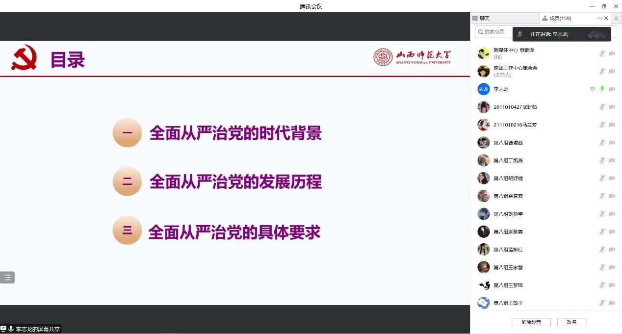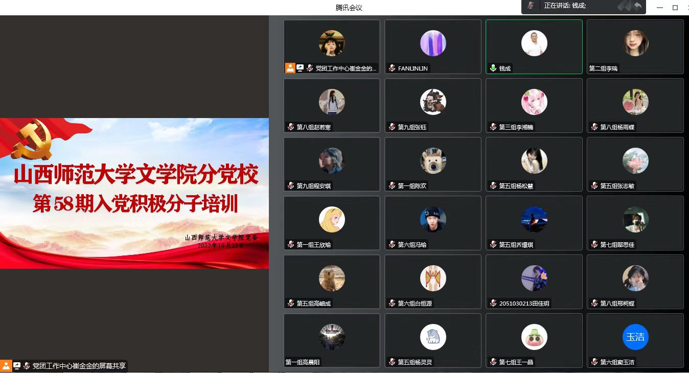 分党校于线上召开第五十八期入党积极分子培训会议,第58期积极分子及师生党员参加。