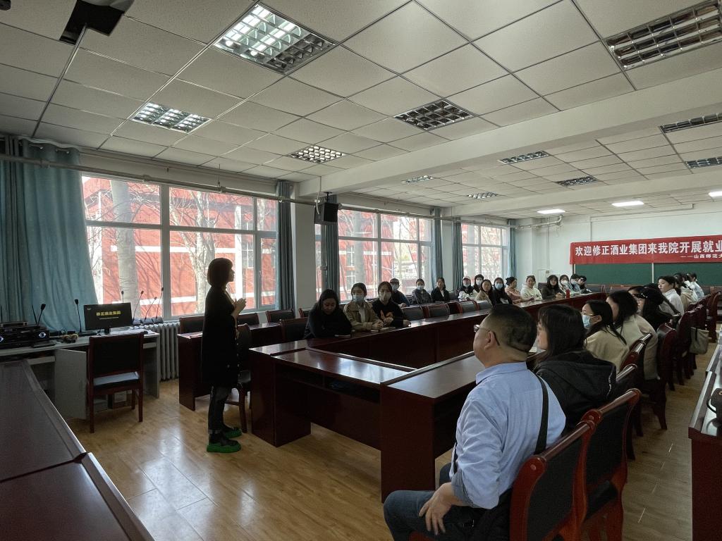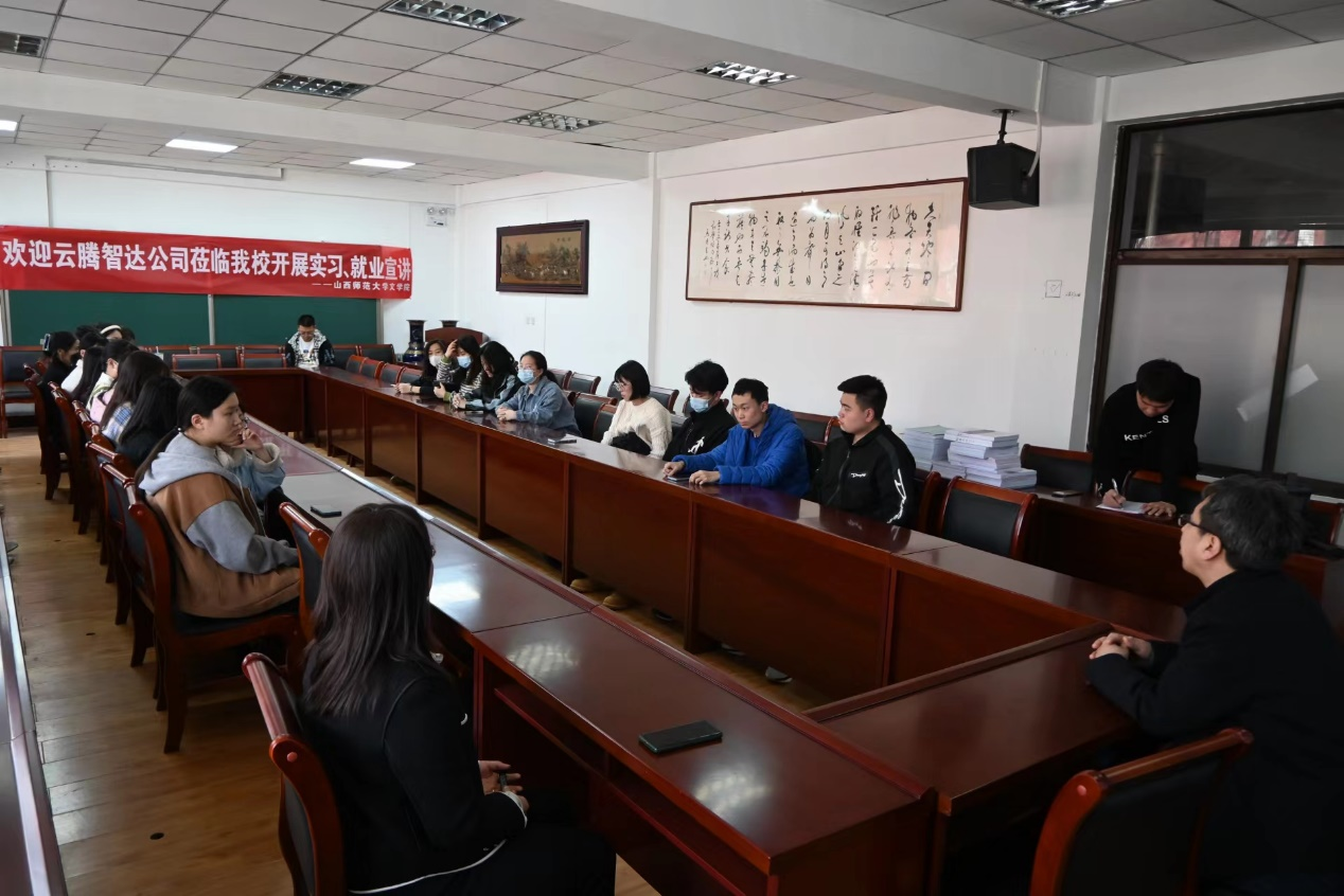 其中云腾智达公司招聘编辑出版学专业学生,修正酒业集团招聘汉语言文学专业学生。他们从公司文化、团队背景、业务内容、发展方向、住宿办公环境等方面进行了介绍。部分同学在会后参与了面试。