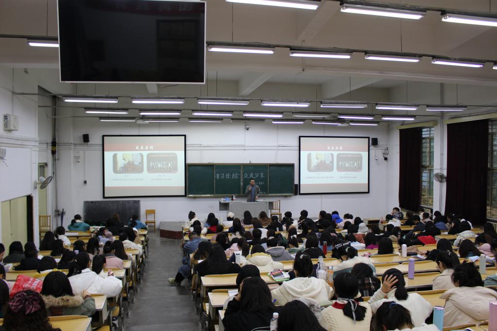 团委宣传部于05103围绕大学学习、生活等方面开展经验交流分享会,优秀毕业生代表郭豪杰担任主讲人,250余人到场聆听学习。