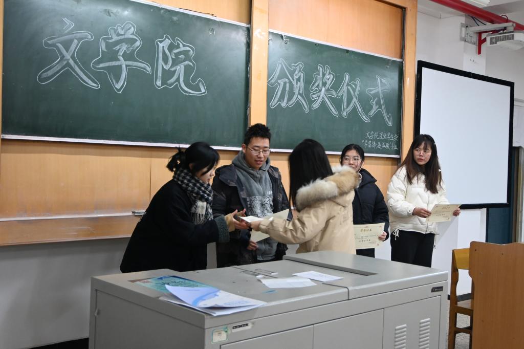 团委学生会学习生活作风建设中心、红烛文学社在南区3107教室举行读书分享会、主题征文大赛颁奖仪式。院专职组织员王永青出席此次颁奖仪式并为获奖同学颁奖。