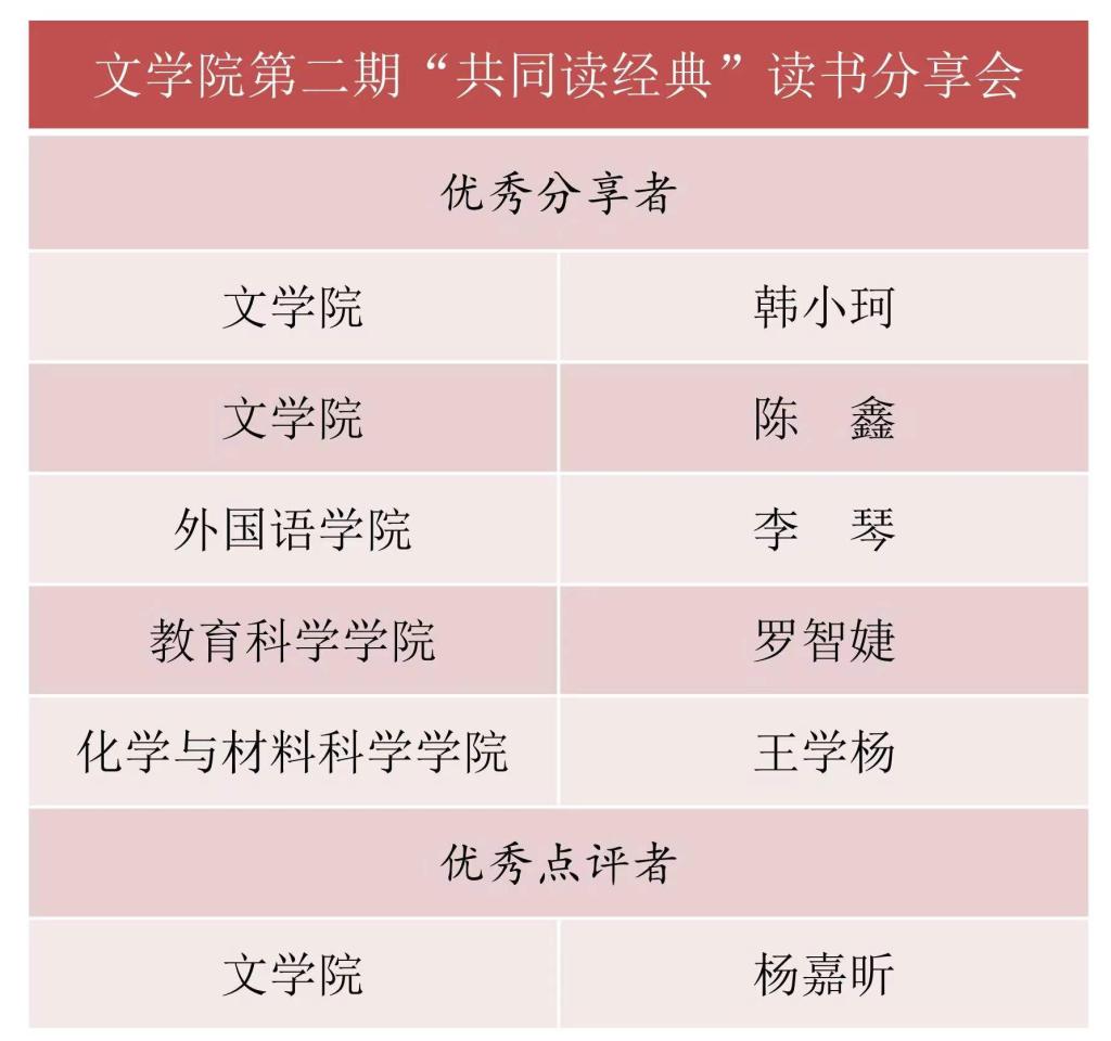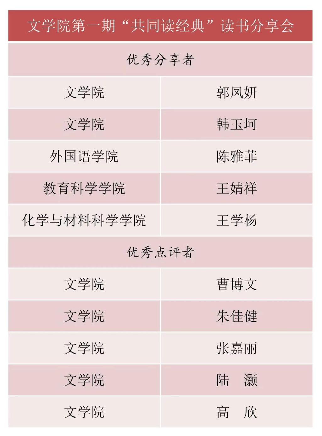 领导和老师的支持下,由红烛文学社主办的“共同读经典”读书分享会开始于2021年12月初,活动采取“线上+线下”相结合的形式,已成功举办两期,390余名同学参加。根据同学们的参与情况和分享内容,两期读书分享会共评选出优秀分享者10人次,优秀点评者6人次。据悉,读书分享会将持续举办,各赚钱网站