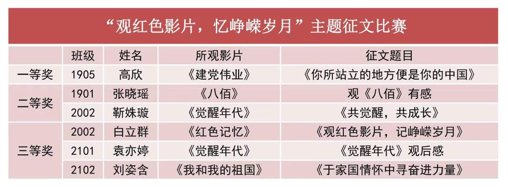 于12月开展宿舍文化节暨文明养成月系列活动。在文明养成月系列活动之“观红色影片,忆峥嵘岁月”主题征文比赛中,共收到学生参赛作品238份,经层层评审,共评选出6份获奖作品。其中,一等奖作品《你所站立的地方便是你的中国》已刊于2号楼门口的展板。