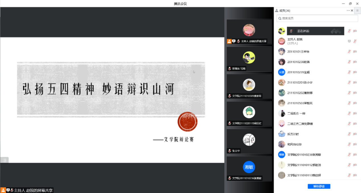 辩论队举办“弘扬五四精神,妙语辨识山河”辩论赛。院辩论队负责人赵锐担任主持人。