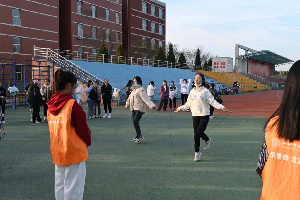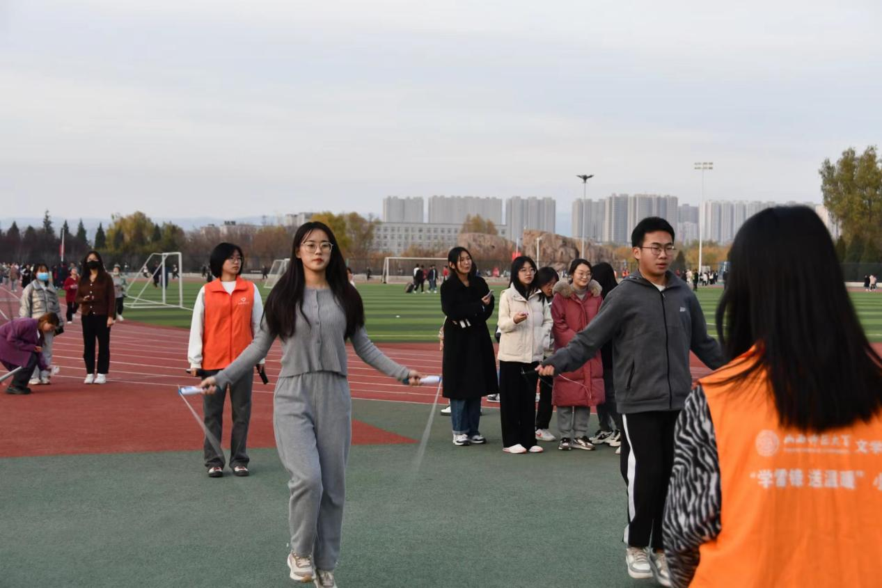 赛前,参赛同学个个摩拳擦掌,手中拿着跳绳或毽子,焦灼等待比赛的开始。“开始!”一声令下,跳绳和踢毽子两项比赛项目拉开了帷幕。跳绳赛中绳子翻飞,空气中只见掠过的虚影,参赛同学跳跃着双脚,挥动着双臂,脚尖与地面的摩擦,谱出一曲动听的乐章;踢毽子的参赛同学身轻如燕,彩色的羽毛毽在空中上下跃动,一起一落间,令人叹为观止。赛场上,参赛的同学们激情澎湃,赛出了青年风采;赛场外,观赛的同学们欢呼呐喊,喊出了必胜决心!天气虽已转凉,可同学们的热情就仿若暖阳,照耀着校园的每一处地方。