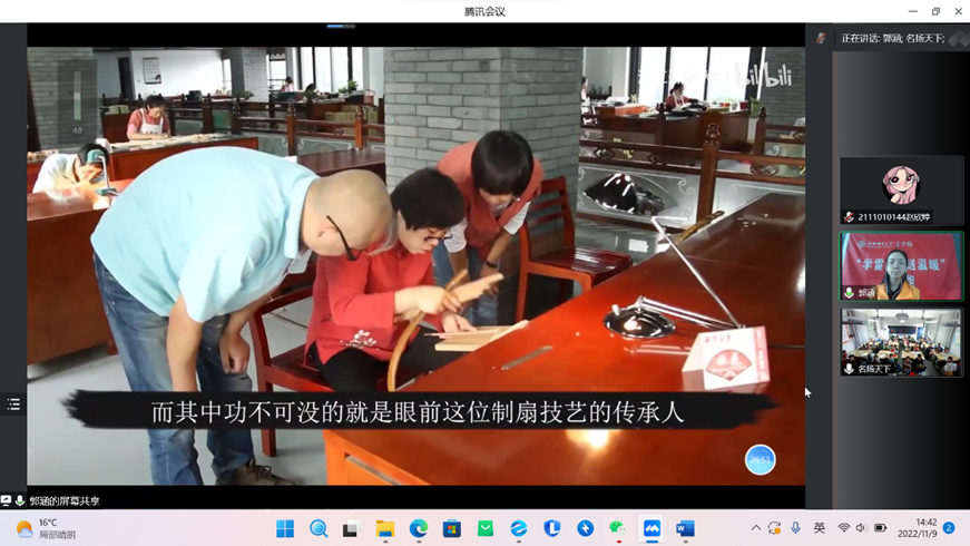 习近平总书记在党的二十大上指出:“全面建设社会主义现代化国家,必须坚持中国特色社会主义文化发展道路,增强文化自信。”非物质文化遗产是国家和民族在历史长河中凝聚的重要文化图腾,学习非遗制扇技艺对于延续历史文脉、坚定文化自信与建设社会主义文化强国具有重要意义。