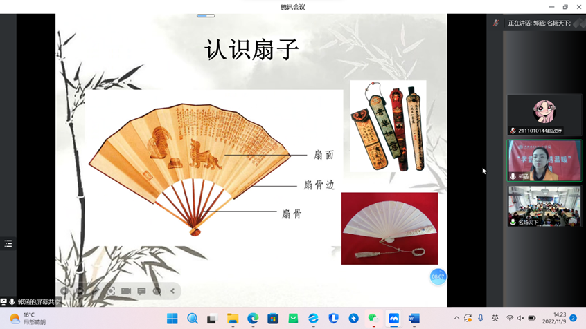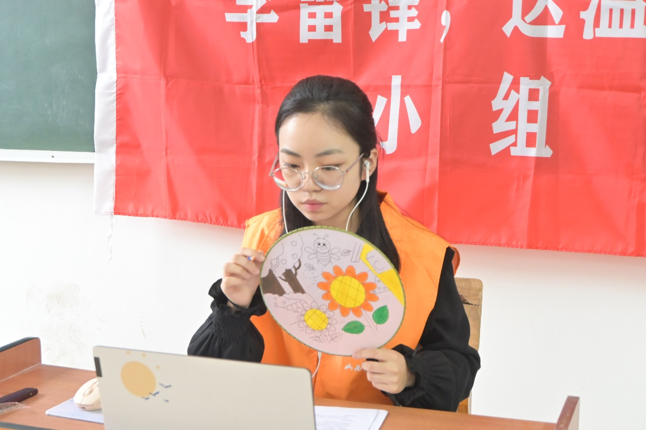 “学雷锋,送温暖”小组志愿者郭涵连线四川德阳市中江县小南街学校,为三年级的孩子们讲授了一堂生动有趣的扇画彩绘课。