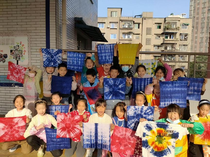 本次扎染艺术课,为孩子们打开了一扇近距离感受非物质文化遗产窗口,在耳濡目染中提高孩子们的艺术审美能力,有助于促使孩子们传承非遗文化、弘扬民族精神、增强文化自信,激发爱国之情,将中华优秀传统文化更好地传承下来,更好地发扬光大。