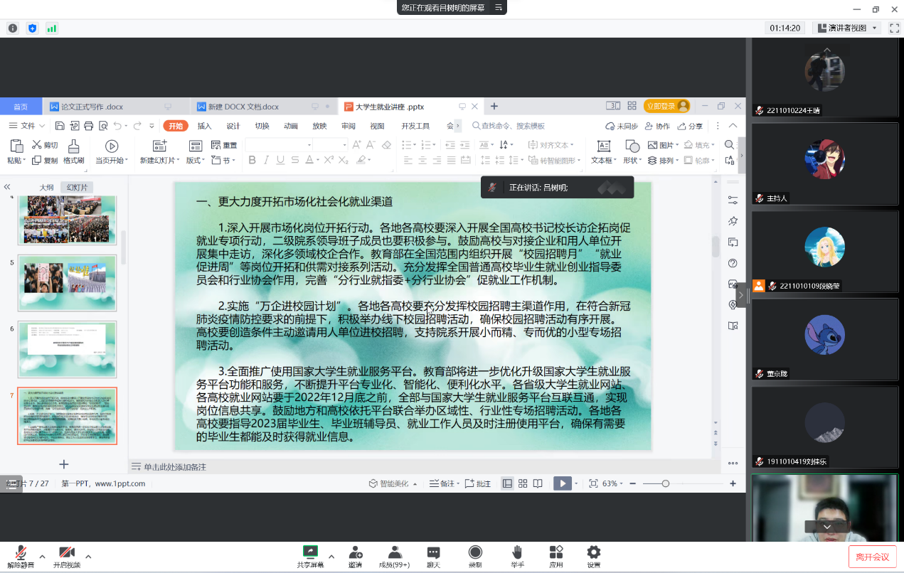 党的二十大报告指出:“要强化就业优先政策,鼓励创新创业,消除影响平等就业的不合理限制和就业歧视。”本次讲座的召开贯彻了党的二十大精神,深刻分析了当前的就业局势,有利于学生树立正确就业观,为日后的就业创业工作做好充分准备。