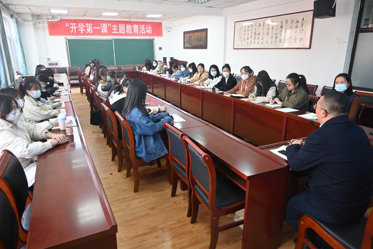 会议室召开“开学第一课”会议。院党委书记钱成、副院长段俊、院团委书记樊琳琳出席本次会议,40名院学生会代表参与。