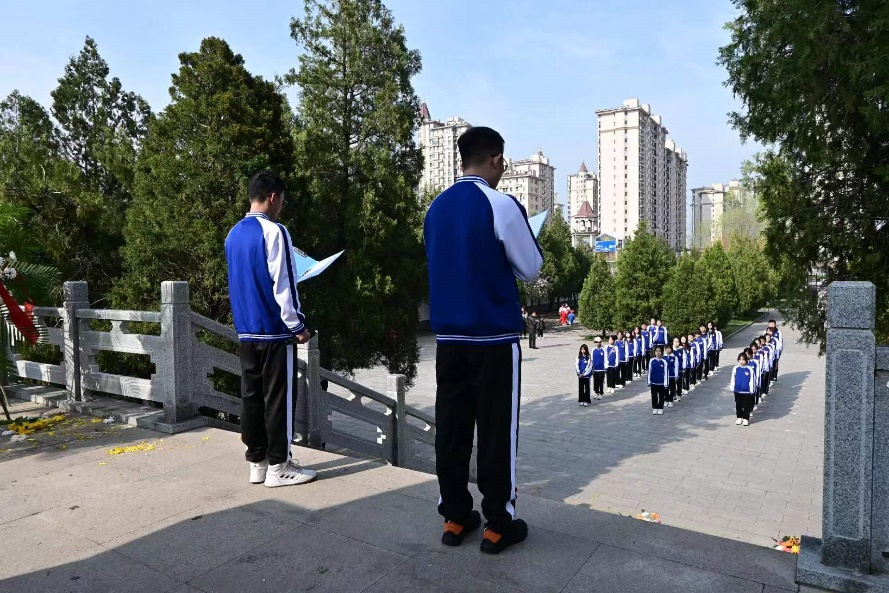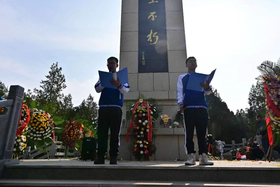 清晨,同学们于学校东门集合,签到完成确认人数后,一同搭乘公共汽车前往太原市小店区革命烈士纪念馆。巍巍丰碑,英烈不朽。在革命烈士纪念碑前,全体同学整齐列队,在庄严肃穆的中华人民共和国国歌奏毕后,怀着对革命烈士的无比崇敬之情,向革命先烈低头默哀,表达对革命先烈的深切哀思和崇高敬意。宣誓仪式中,同学们重温《入党誓词》,表达传承红色基因、永葆坚定信念的决心。