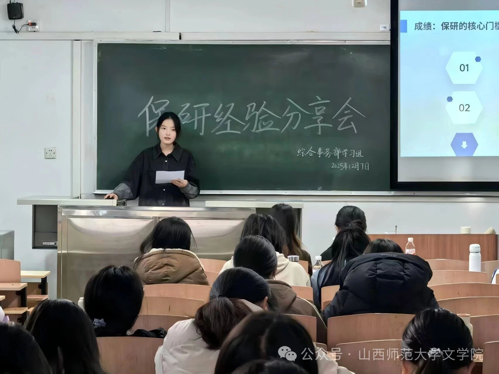 综合事务部学习组在南区3301教室成功举办“研路筑基,保研启航”保研经验分享会。此次分享会特邀郝嘉瑛同学、黄烨冰同学和苗雨露同学分享经验,九十余位同学参加。