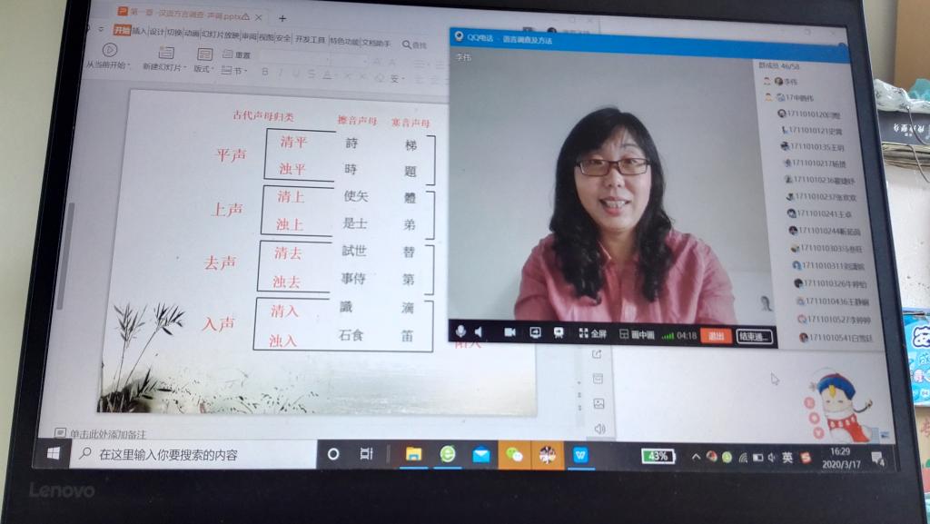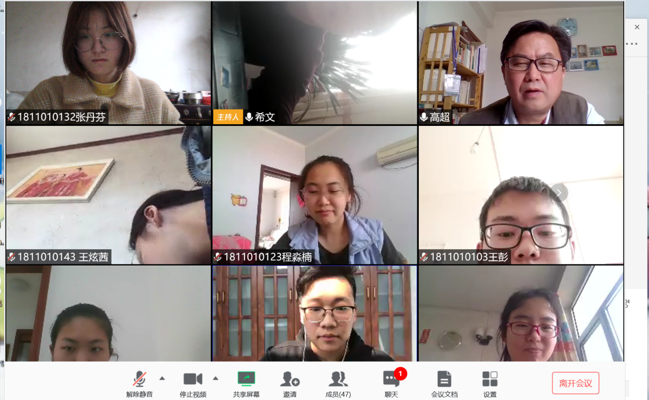 的老师们对网络课堂的把控愈发纯熟。在教师们的及时调整、认真准备和积极探索下,在网络课程平台的辅助下,混合型课堂、研讨型课堂、任务型课堂、问题型课堂、讲授型课堂等多种模式课堂逐渐形成。下发任务、课前预习、课上讲授答疑、课后作业、线上互动,教学过程在教师的“教”和“导”以及学生的“学”和“思”中,逐渐有了更多地思维拓展。这场“云端”的课堂革命,在教师和学生的认真努力下,异彩纷呈。学生听讲认真,线上互动积极、体现了良好的教风和学风。