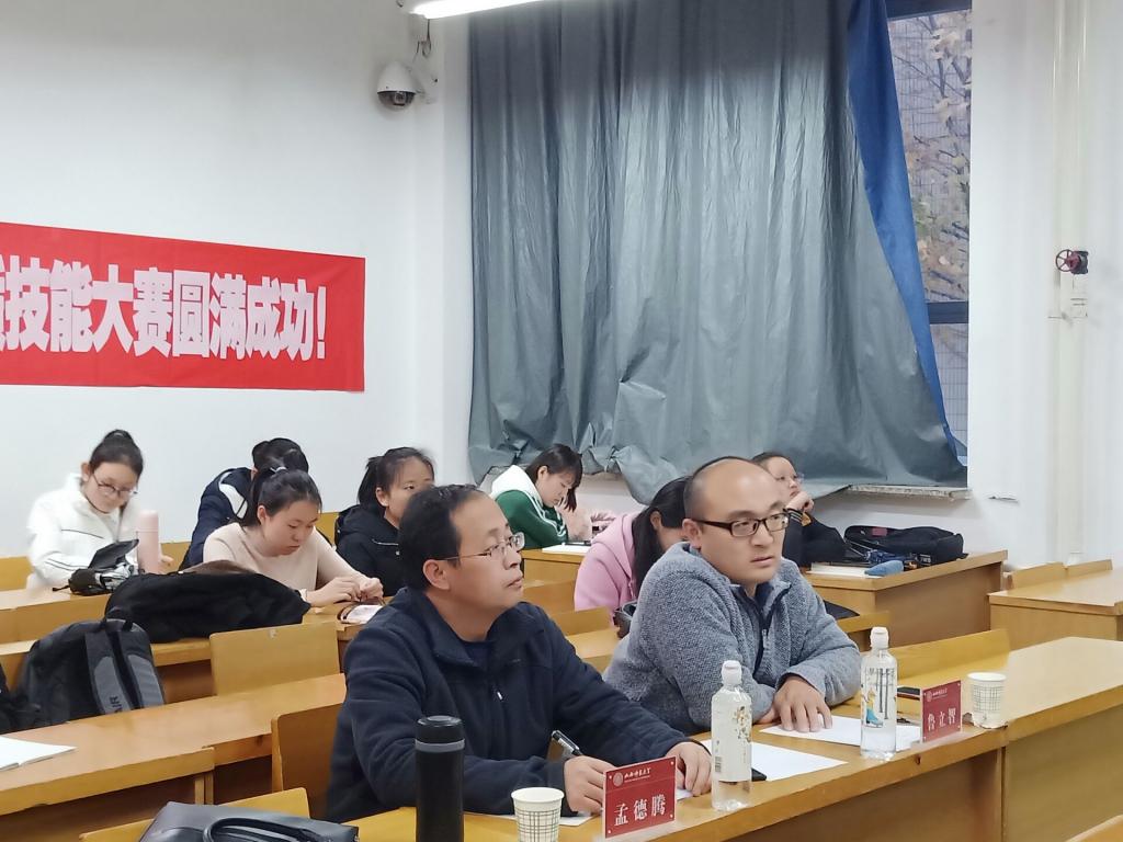 评委老师薛月兵在点评中指出,作为教师,我们要在“解释有深度”“框架有条理”“内容有风趣”“思维有创新”上下大心血、大功夫,坚持求真求实,不断开拓进取,用良好的课堂把控、准确的讲课语言、清晰的逻辑表达以及真诚的人文关怀去引导、教育和感化学生,让教育做到如沐春风。经过激烈角逐,最终1804班高晶、张夏琳荣获一等奖,研一褚兰平、1907班贾蓓雯获二等奖,1802班李诗琼、李嘉欣获得三等奖。