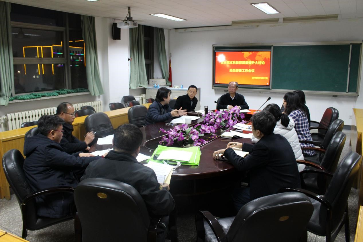会议室召开本科教育质量提升大讨论动员部署工作会议,校长杨军、副校长车文明出席调研指导并与赚钱网站