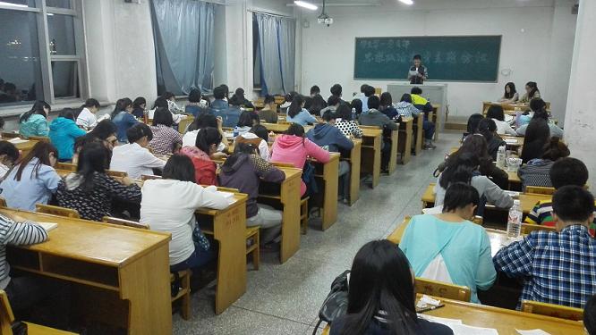 学生第一党支部4月23日在12406教室召开了以“‘营造良好小气候’ ,吹响发展集结号”为主题的政治理论学习会议,主要围绕《人民日报》关于协调推进“四个全面”战略布局的五篇社论、李克强总理的《政府工作报告》、武海顺校长的教代会工作报告等三个方面的内容展开学习、讨论。