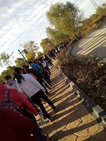 毅行学子在汾河公园入口处进行整队集合,在清点人数、强调安全纪律要求、再次明确学生会安全负责人职责后,开始了本次的毅行活动。毅行队伍以班级为单位,结伴而行在汾河公园的环形路上。途中,各班以唱歌、诵诗等方式活跃气氛,激昂斗志;结伴而行的同学们借机相互交流学习、生活经验或感受,很好地促进了同学们之间的沟通和友谊,也极大地增进了班集体的凝聚力。很多同学在毅行、交流、欣赏秋景的同时,还兴致勃勃地进行拍照留念,把大学生涯中这美好的瞬间变成值得珍藏的永恒。