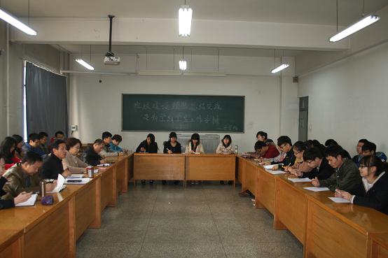 在12405教室召开班级建设经验交流及新学期学生工作会议。院党委书记吴华英,院党委副书记、学工组组长强汾生,院学工组全体成员、赚钱网站