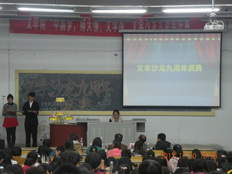 晚上8:30,现场上百名师生热烈的掌声,为“文学沙龙”九周年庆典活动画上了圆满的句号。