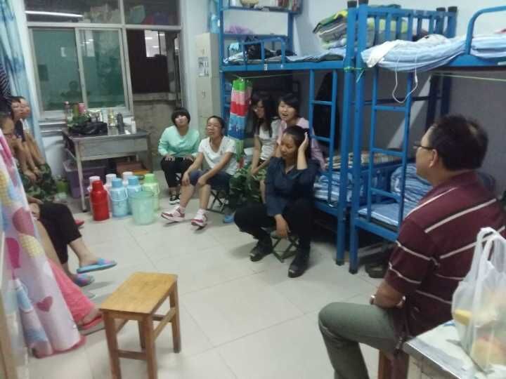 党委书记吴华英老师将自己任辅导员的1501、1502两个班的学生集中到两个宿舍,同他们近距离地谈心、了解入学后的各方面状况。趁着节日的气氛,吴书记首先为同学们送去中秋的祝福,并嘱咐同学们离家在外的第一个中秋夜一定多吃水果、月饼,过好中秋。同时,身为辅导员,她教导大家,虽不在家人身边,但班级是个温暖的大家庭,可以彼此依赖,扶持。最后,吴老师对近期为班级建设工作付出努力,尽心工作的班干部表示感谢,并希望大家认真配合班委展开工作,尽快熟悉大学生活。