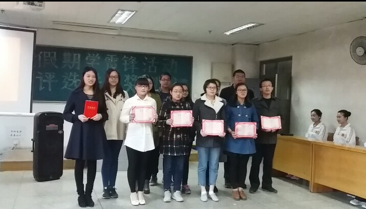 寒假学雷锋社会实践活动个人组一等奖,胡娇、武振宇、张燕飞同学获得寒假社会实践团体组一等奖。