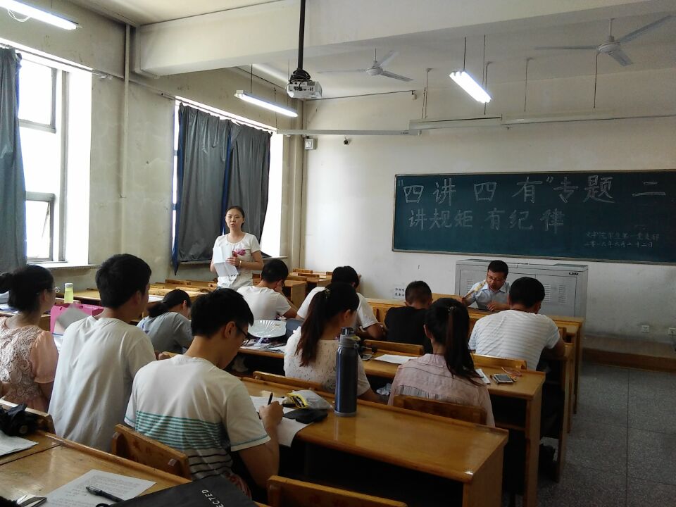 党委“两学一做”学习教育安排部署,学生第一党支部和学生第二党支部在教学楼12205、12208教室分别召开了“四讲四有”专题二学习讨论会,两个党支部的所有正式党员以及预备党员参加了教育学习活动。一支部组织委员李奎老师,二支部组织委员何伟老师和宣传委员薛月兵老师出席了会议。