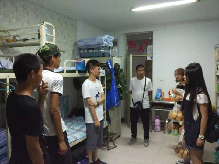 大一新生辅导员代表李晓敏老师及学生会各部部长组成节日慰问团,共同走进新生宿舍,为大一新生送去节日祝福。