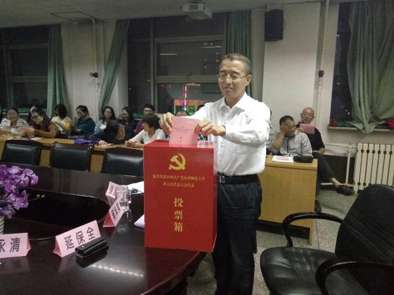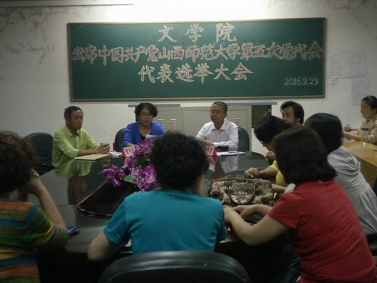 党委在院会议室召开出席中国共产党山西师范大学第五次党代会代表选举大会,会议由院党委书记吴华英同志主持。