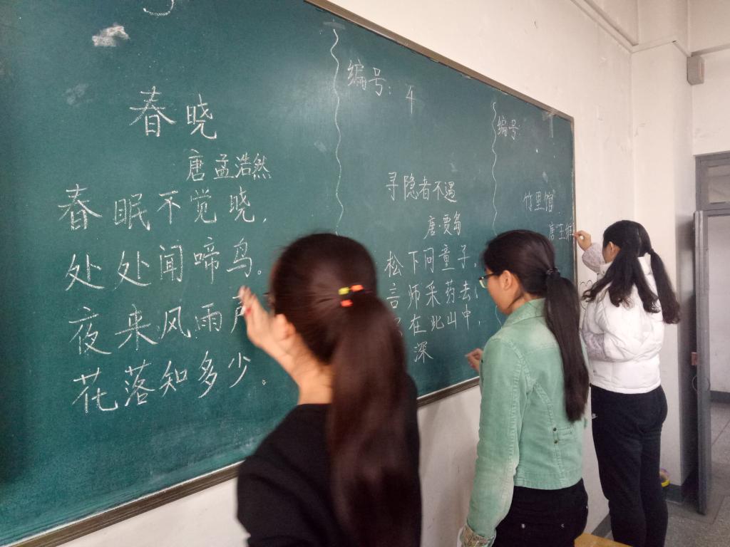 初赛共分为“三笔字”,“教学设计”,“主题演讲”,“课堂教学”四个环节,共有19位选手参加。11月12日上午,他们分成两组进行了“三笔字”和“教学设计”的考核。“三笔字”环节共有毛笔字、粉笔字、钢笔字三个部分,选手需要在85分钟的时间内完成指定篇目的书写。这个环节格外富有传统文化气息,选手们挥洒笔墨,书写出了一个个隽秀的文字。第二个环节,选手在已经准备好的所有课文中随机抽取自己需要教学的篇目,在计算机房完成相应教学内容的教学设计及课件制作,时间为150分钟。在此环节中,所有选手沉着冷静,认真研读课文,不断完善教学设计并紧锣密鼓地制作相应的教学课件。