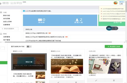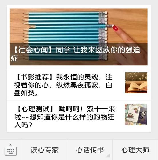 心理健康部认识到:新媒体以其形式丰富、互动性强、渠道广泛、覆盖率高等特点在现代传媒产业中占据越来越重要的位置,在它迅速发展的同时,也越来越多地影响着当代大学生的生活,已经为大学生传播正能量拓宽了渠道。如今,我校学子都在通过各种社交网站、微博等新媒体建立各种联系或传播正能量。随着微信影响力迅速的扩大,对于心理健康部来说,建立自己的微信公众平台是传播心理知识的一个很好的窗口。为贴近广大学生的兴趣爱好,保证其内容有较高的阅读价值,心理健康部建立了《心阅》专业微信公众平台,各班级均给予了及时关注,《心阅》微信定期在每周六的晚上进行推送。其内容大多与时事结合,简单幽默,符合大学生的口味。同学们可以利用碎片时间浏览,轻松之余潜移默化形成心理健康观念,高度重视起了心理安全与健康。