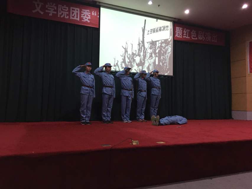 团委入团再教育之“青春脚步跟党走”主题红色剧演出的圆满结束。此次活动不仅提升了各班同学们的凝聚力,培养了同学们的默契度,而且也号召同学们要铭记历史,展望未来。相信先烈们的革命精神,一定会激励着同学们在大学乃至以后的人生道路上,百折不挠,勇往直前!