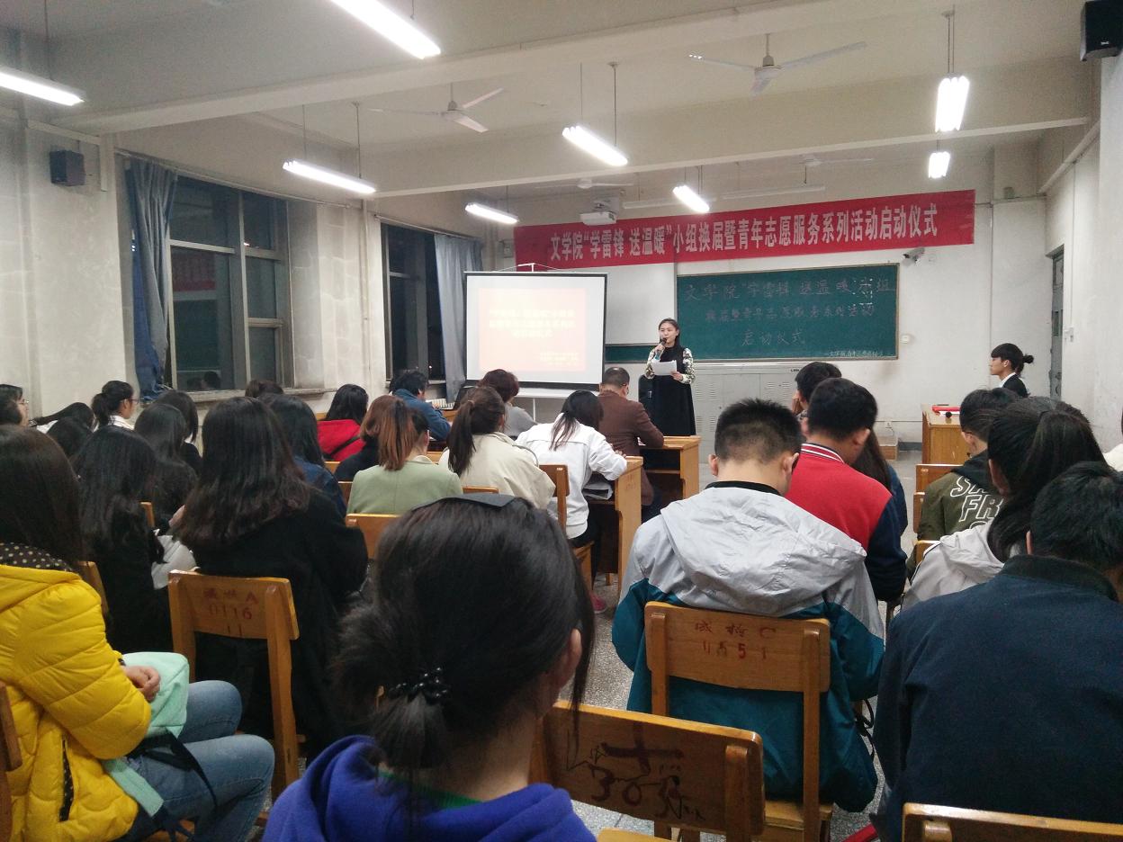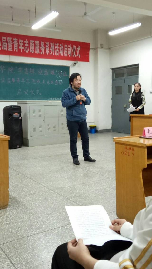 青年志愿者协会于12208教室举办了“‘学雷锋,送温暖’小组换届暨青年志愿服务系列活动启动仪式”。院党委书记吴华英老师,副院长、学工组副组长栗永清老师,团委书记孙学虎老师,学生会主席团代表、各部部长,青协全体成员及大一各班班长、团支书参加了此次启动仪式。