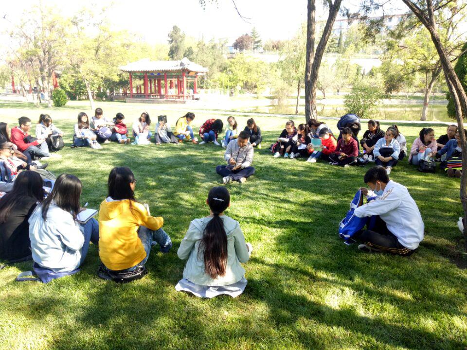 1602、1603班辅导员、副教授李晓敏老师与同学们在草坪上畅谈阅读心得,活动气氛轻松愉快,同学们收获颇丰。