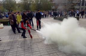 学生积极参与到灭火实践当中,体验了在发生火灾时如何冷静应对、如何正确使用灭火器。