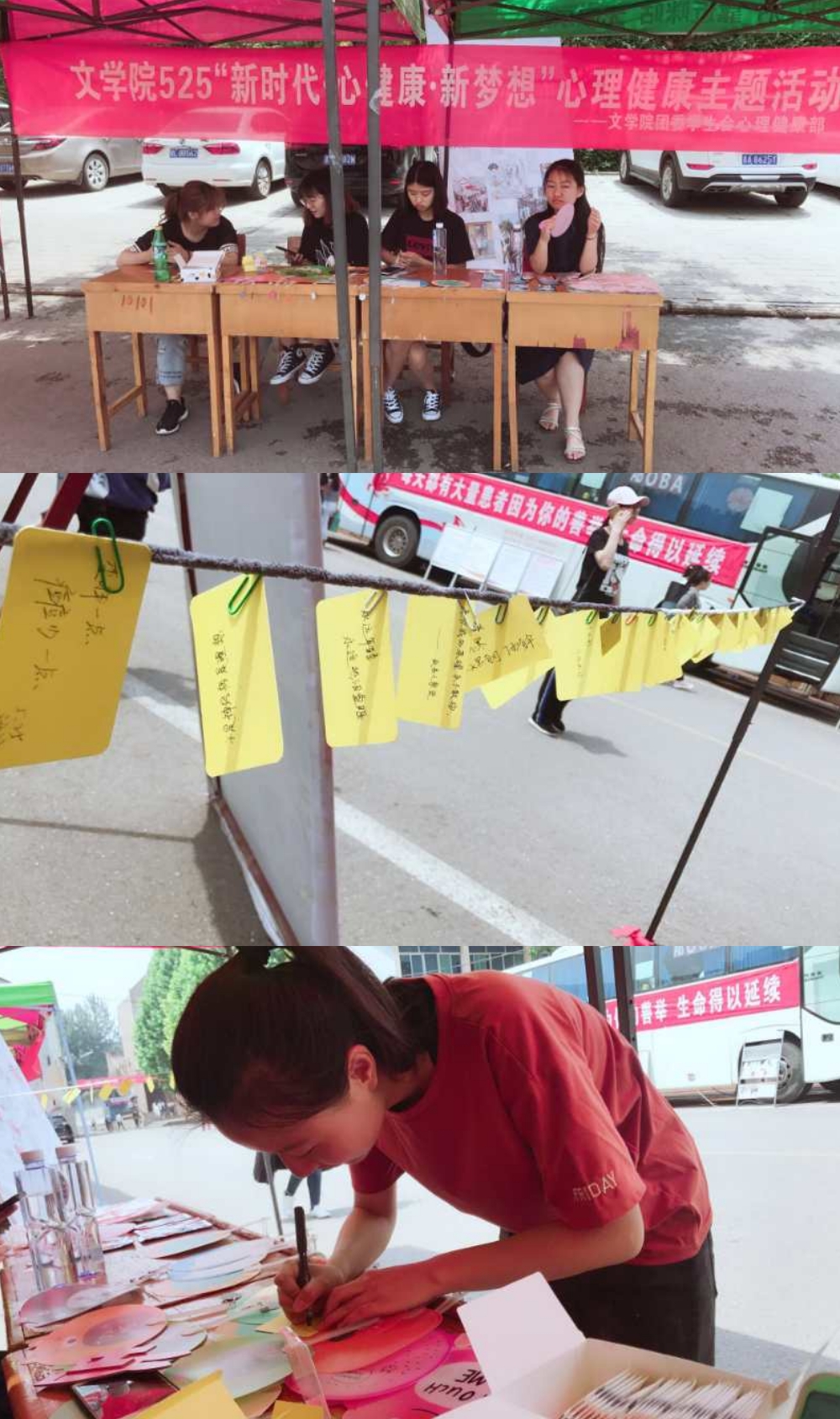心理健康部在校医院门口举办了“新时代,心健康,新梦想”心理健康主题活动。