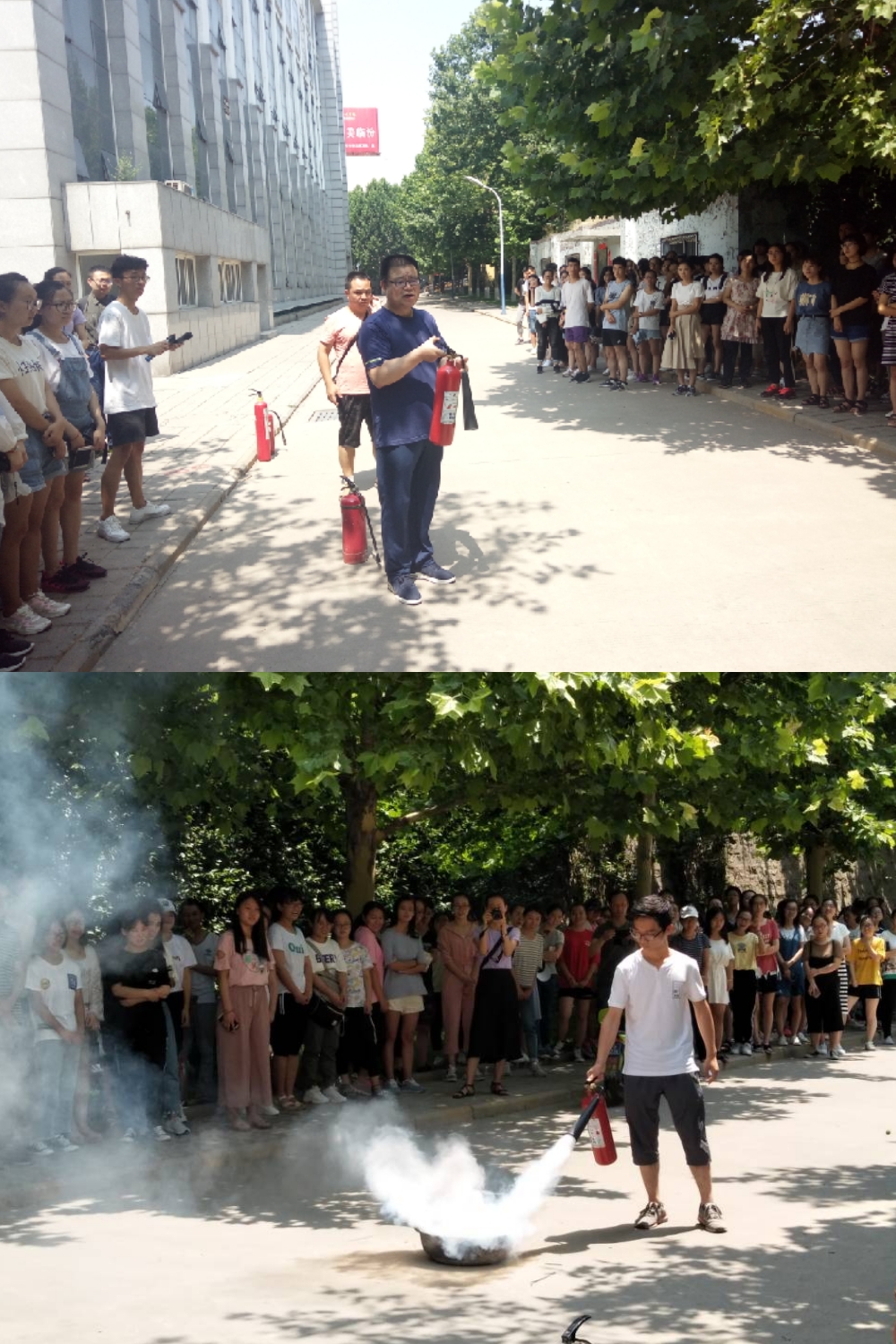 演习过程中,各班班长积极配合工作人员的工作,在警报声响起后组织本班学生迅速、有序地撤离教室,并在12号楼东侧空旷区域的指定位置集合。随后,消防科科长张威对此次应急疏散演练进行了总结,指出了演练中存在的问题。为使同学们熟练掌握灭火器的使用方法,张威科长详细说明了各类灭火器的原理、基本操作方法及注意事项。在认真听讲及观摩后,部分学生亲自体验了现场灭火的过程,面对火堆表现地十分积极勇敢,手持灭火器向火源喷射,火势迅速被扑灭。