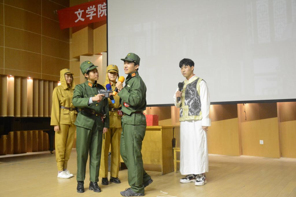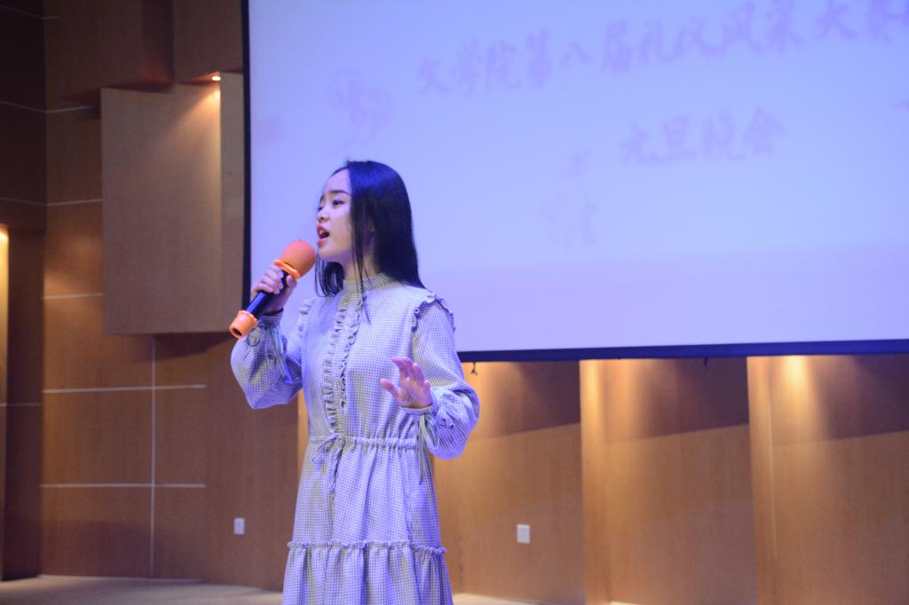 40余名学生积极报名参加。经过前期紧张激烈的比赛,15名同学脱颖而出晋级决赛。晚会上,他们精心准备的器乐合奏、吉他弹唱、诗词朗诵、歌曲串烧、情景剧演绎等精彩节目在为观众呈现视觉盛宴的同时弘扬了中华传统礼仪文化,助力大学生提高自身修养。其中,歌曲《逆光》《我的秘密》的演唱者用清亮的歌喉和俏皮的律动带给观众美的享受;吉他弹唱《好久不见》使观众内心逐渐沉静,陷入回忆;爵士舞蹈《DUDUDU》《Crazy》将全场氛围推向高潮;手影舞《遇见》、诗朗诵《轩辕赋》及小品《药方》的表演传递了震撼人心的力量……
